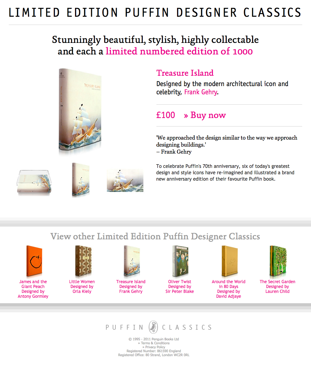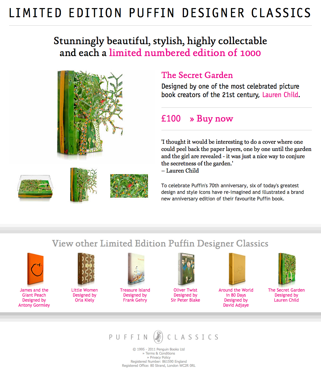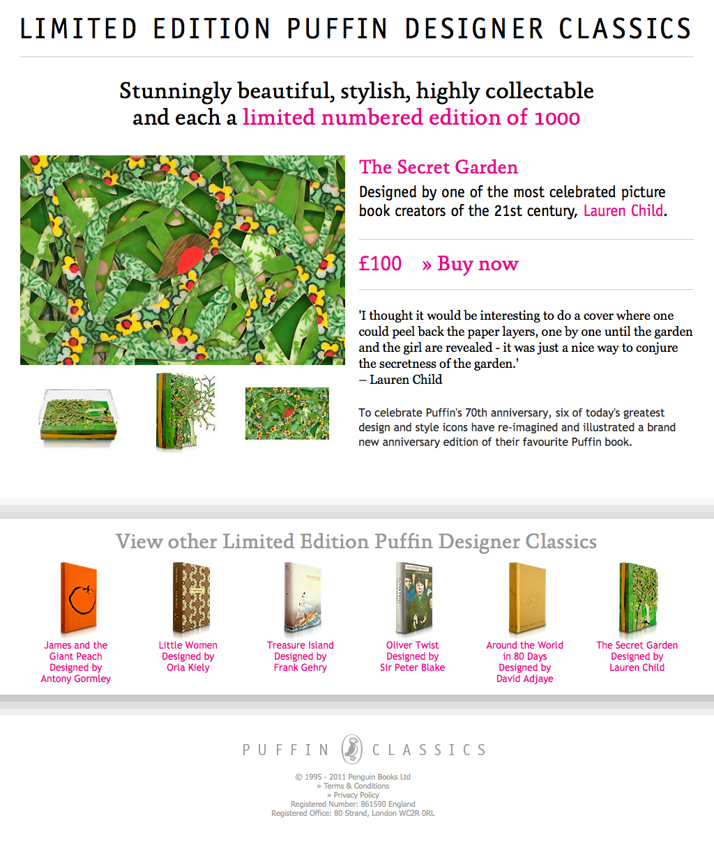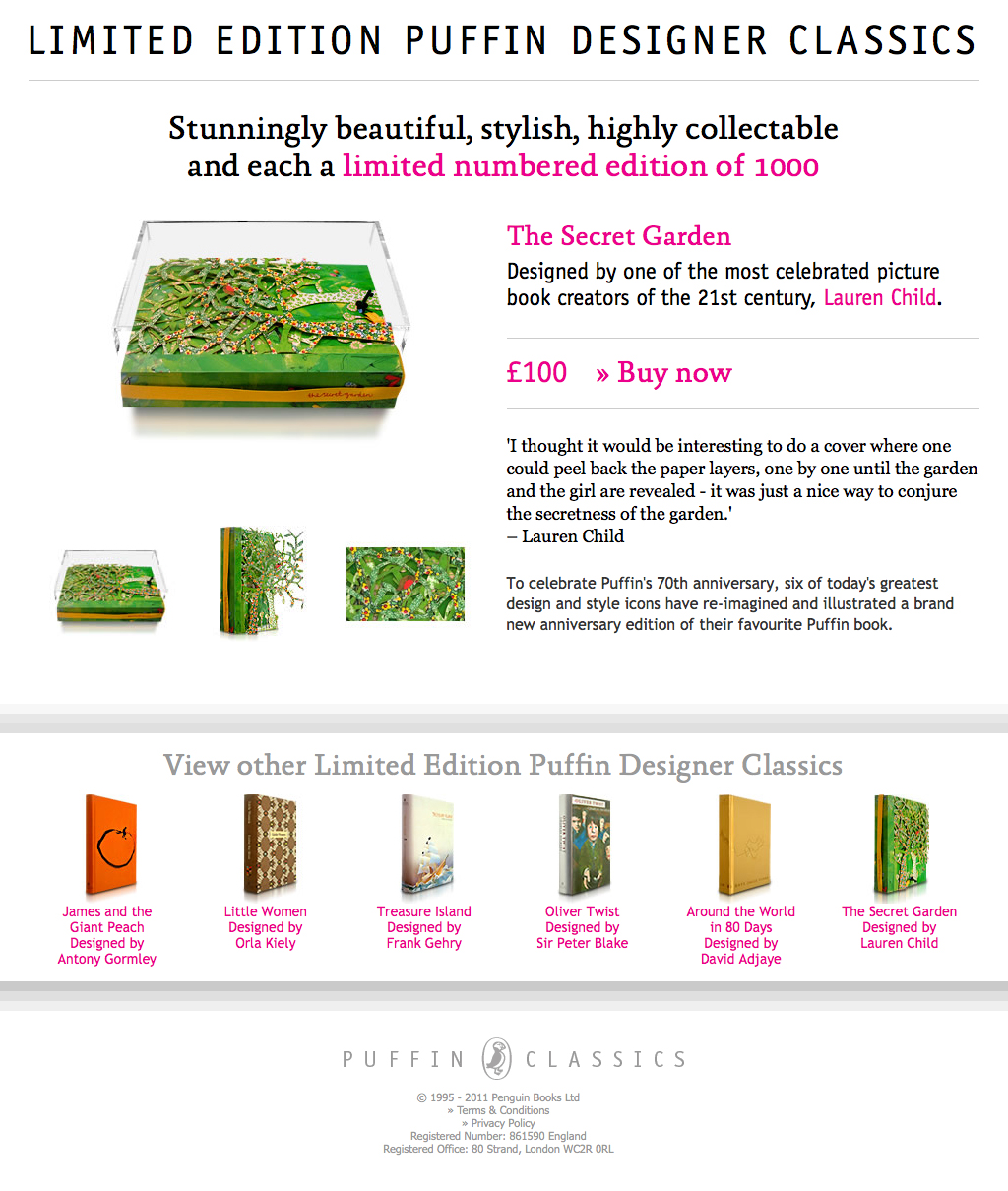 I created this site to celebrate the to celebrate Puffin's 70th anniversary. Six of today's greatest design and style icons have re-imagined and illustrated a brand new anniversary edition of their favourite Puffin book.